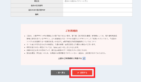 決済内容や配送先住所を確認後、ページ下部にある赤色の「注文を確定する」ボタンをクリックし、「ご注文ありがとうございます」の画面が表示されたら注文確定となり、プリントの手配に入ります。発送日や送り状番号などは改めてメールにてご案内します。