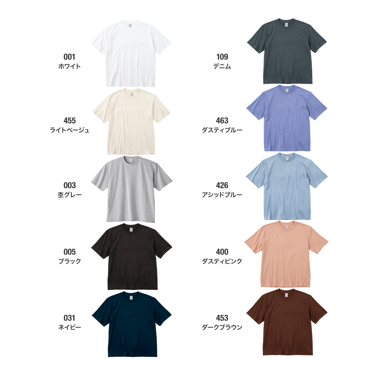 | 素材 | 5.6oz 17s天竺 綿100% 切れるネーム(ティアアウェイラベル) ※襟ネームに、手で簡単に切り取ることのできる素材を使用。 |